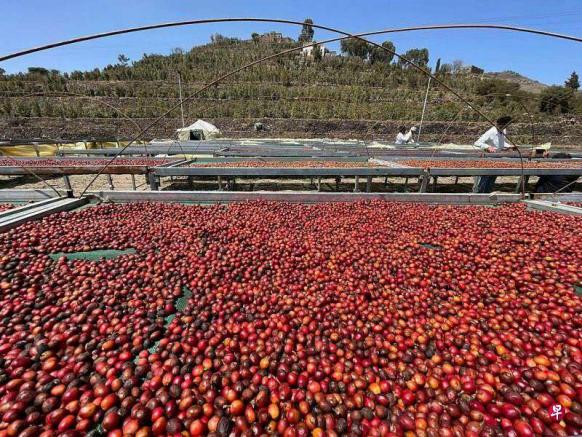 还有门萨那咖啡豆种植园里晒干的咖啡果。 图源|美联社