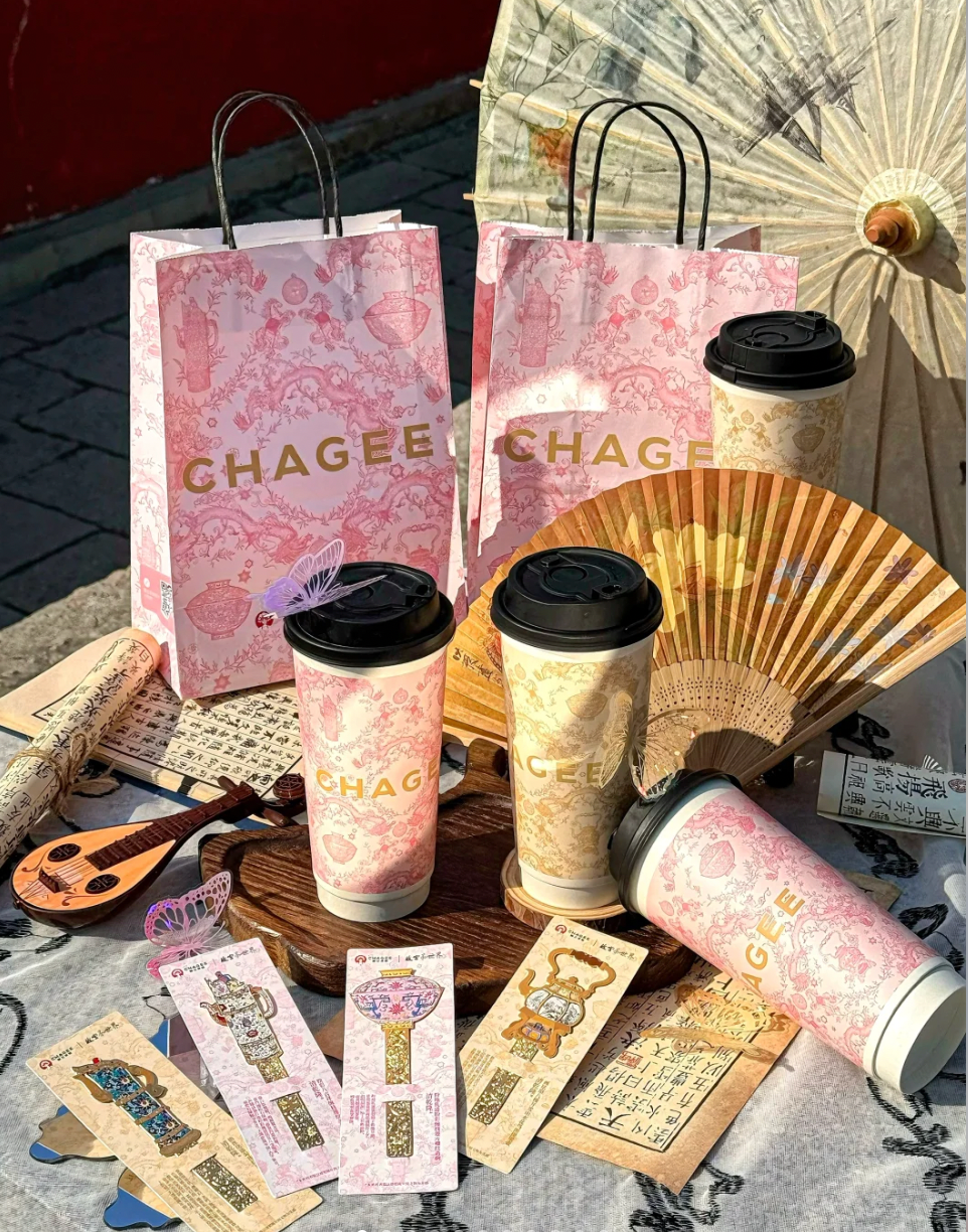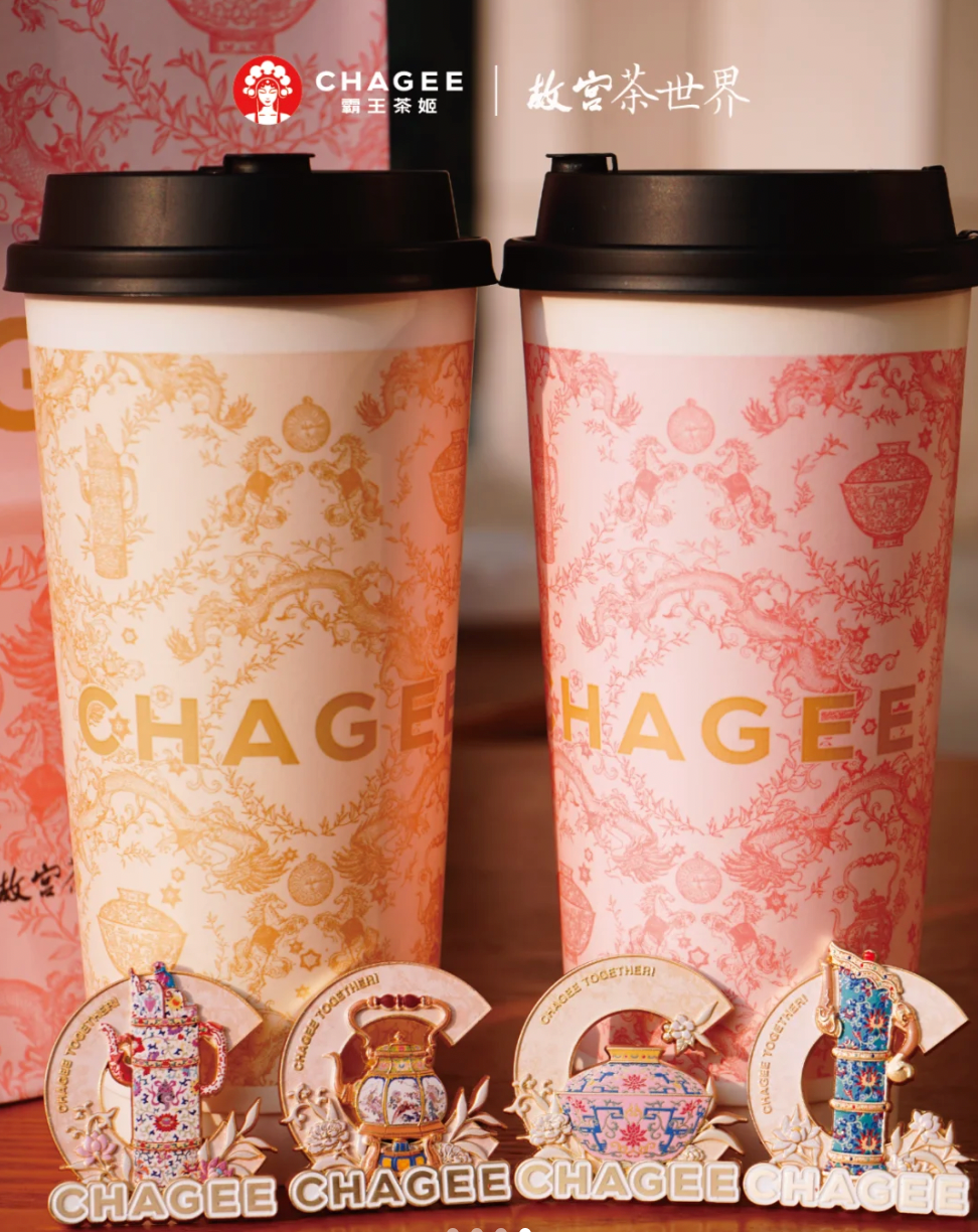 再比如霸王茶姬联合故宫博物院,共同推广“故宫茶世界”茶文化特展,在全国20多个城市巡展,推出主题杯、纸袋、笔记盲袋、冰箱贴纸、行李牌等系列产品,在社交平台上刷存在感,赢得大量粉丝。
