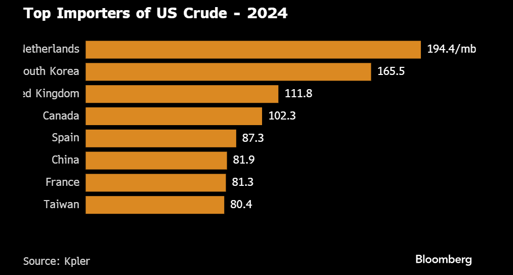 根据Kpler的数据,今年以来,美国对中国的石油出口量急剧下降到8190万桶,比去年的1.506亿桶下降了46%。它使中国从去年第二大美国石油客户下降到第六。