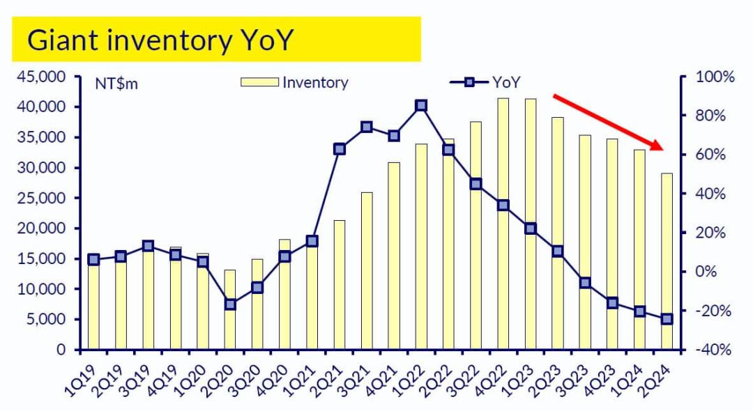 这一趋势在今年第二季度开始显现。根据CycleCorner的数据,截至2024年第二季度,许多知名品牌的库存过剩,其中捷安特高达40%,美利达达45%。