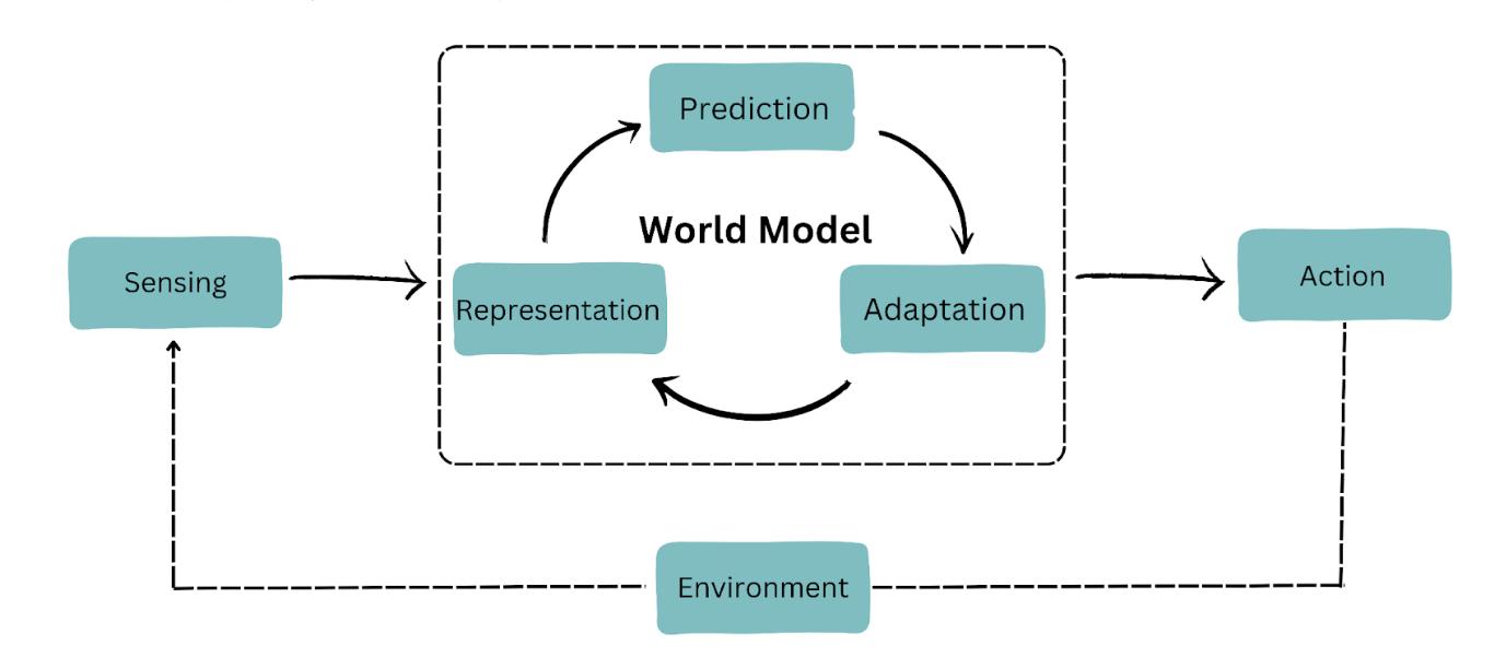 世界模型的基本思想来自于对人类和动物如何理解世界的分析。我们的大脑可以模拟可能的未来场景,并根据这些模拟做出决定。借鉴这一机制,世界模型旨在为人工智能系统提供内部环境模拟,使其能够预测外部世界的状态变化,进而在不同的场景下做出适应性决策。
