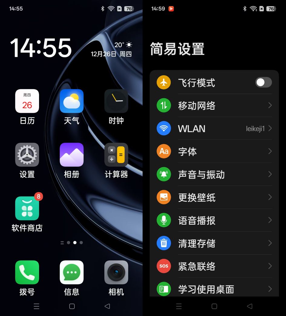 以OPPO为例。“老年模式”(ColorOS中的名称是“简单模式”)启动后,手机的字体、图标、App布局都会发生变化,甚至外部音量也会相对较高,可以算是一些适合老年人的变化。