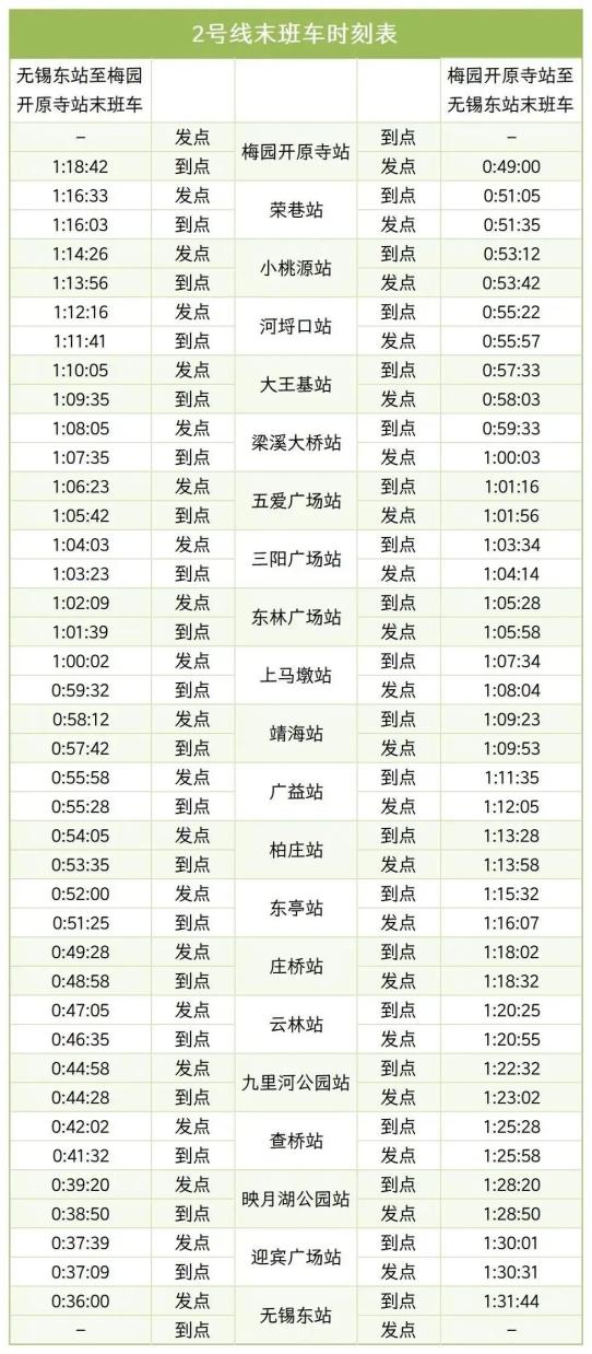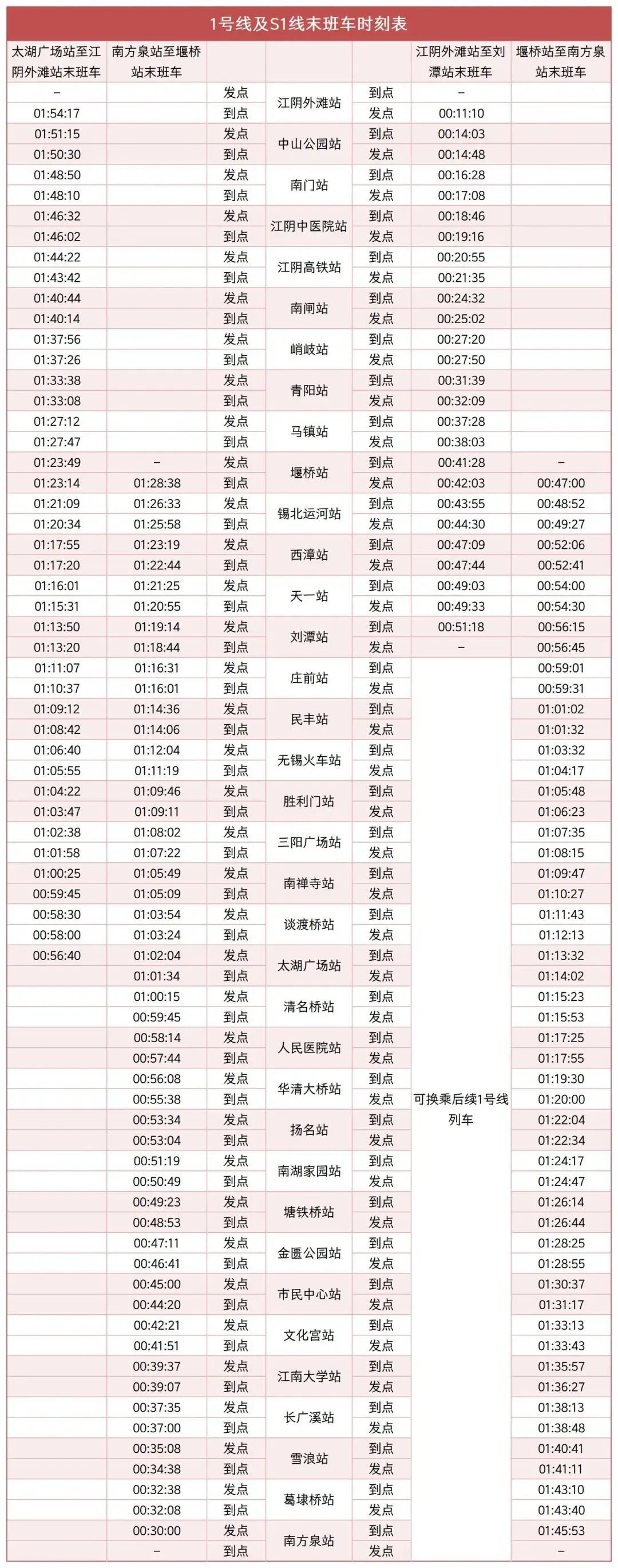 为满足市民出行需求,无锡地铁结合往年除夕夜客流特点,合理匹配客流需求,12月31日增加除夕夜网运营管理时间约2小时,增加运营期。、2、3、4号线行车间隔约5-10分钟,S1线行车间隔约10-20分钟,具体取决于车站的实际情况。