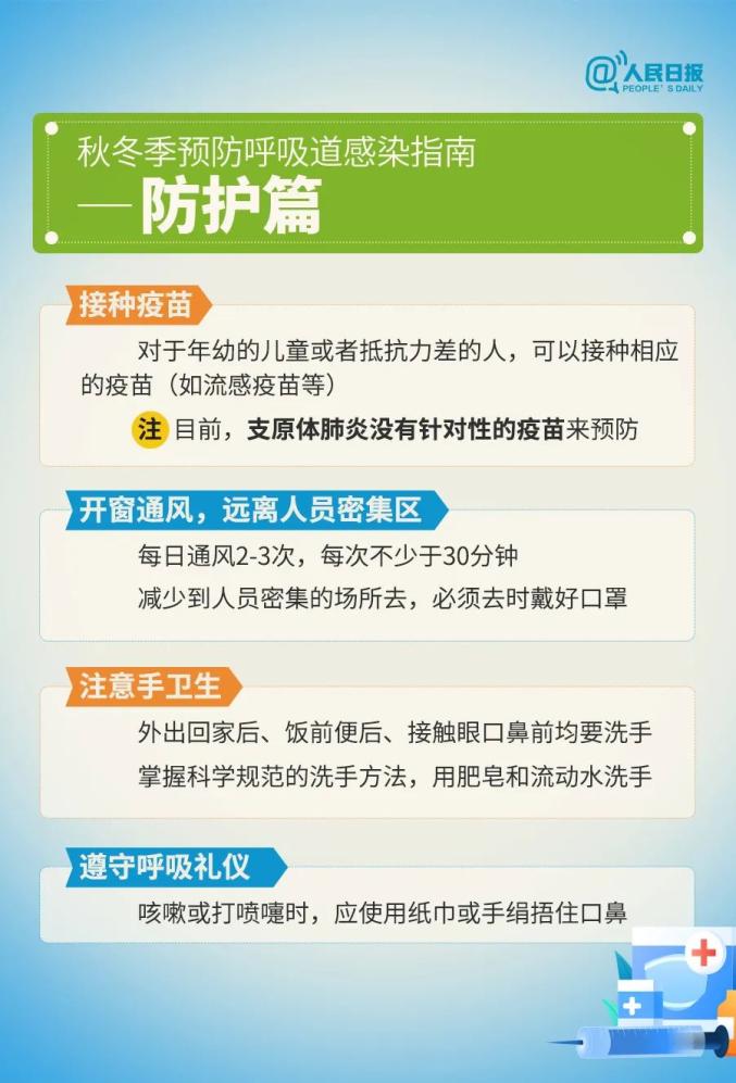 冬季,大多数呼吸道病原体在外部世界的生存时间增加,呼吸道传染病的传播风险增加。中国疾控中心建议公众保持良好的呼吸道卫生习惯。咳嗽或打喷嚏时,用纸巾、毛巾遮住口鼻;勤洗手,尽量避免用手触摸眼睛、鼻子或嘴巴;均衡饮食,适当运动,充分休息等。
