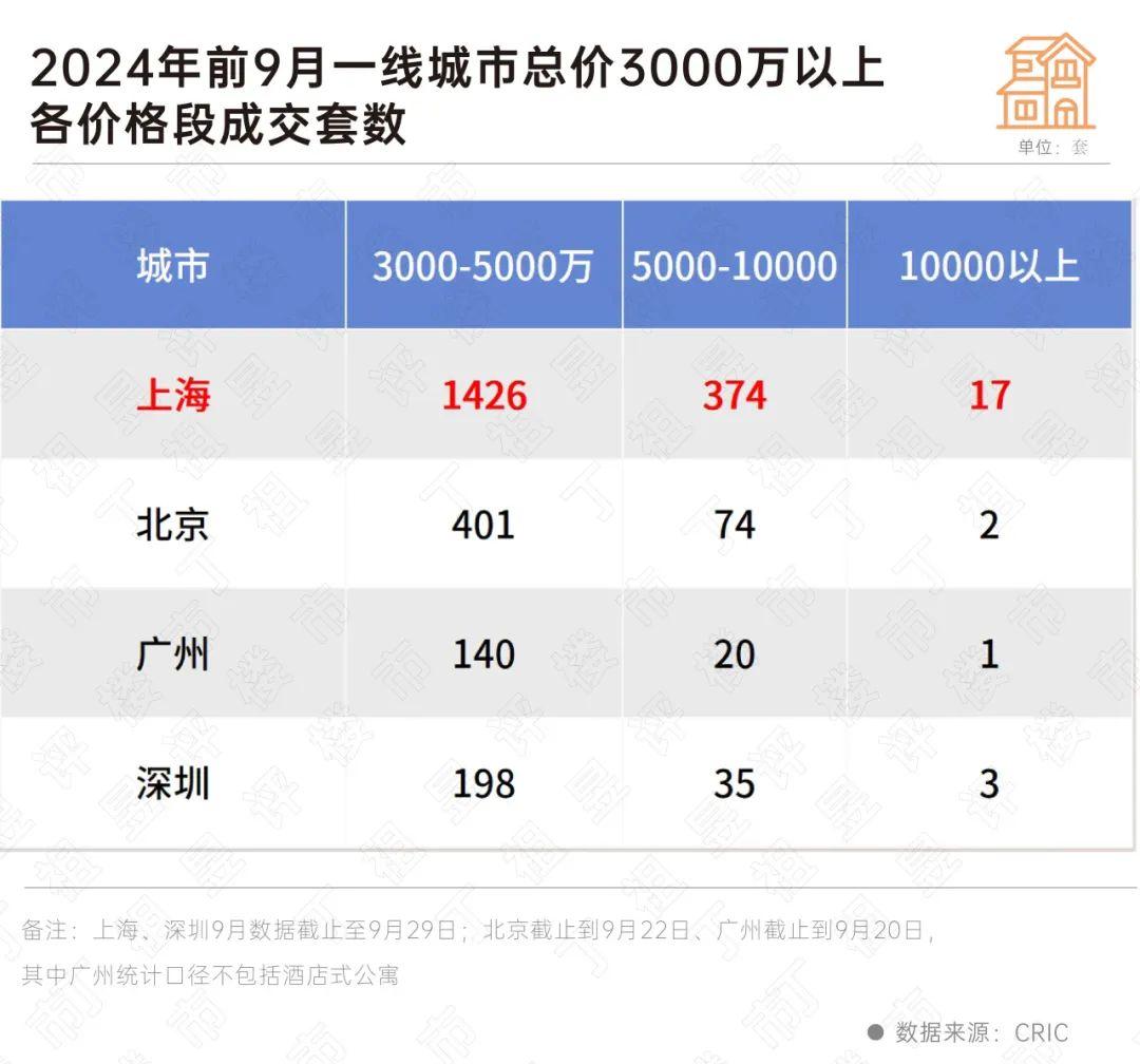 易居克而瑞曾经做过一个统计,今年前9个月,上海总价超过3000万的豪宅共卖出1817套,成交规模达到近10年来的最高水平。