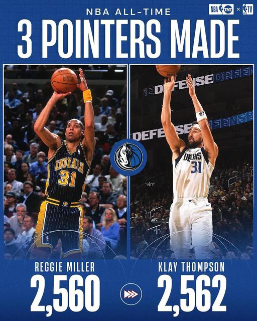 克莱汤普森目前为达拉斯独行侠效力。在圣诞大战中,他也受到了很多粉丝媒体的关注,因为克莱汤普森在这场比赛中的三分球。 10 投 4 中,这也是让他在三分球历史榜上, 2561 三分球排在第五位,超越了传奇名宿雷阿伦!