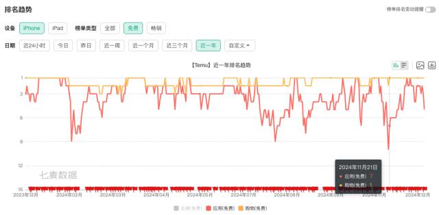 包含 Temu 在日本 App Store 应用排名,基本没有掉出购物榜前面的情况。 3 。