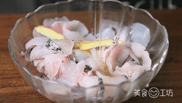 3. 鱼洗净沥干,加入姜片、盐、料酒腌制,再加入蛋清和淀粉抓匀(鱼嫩而不碎的秘诀)。