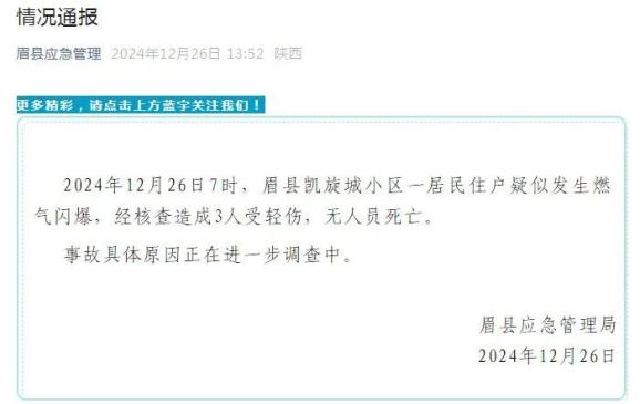 眉县凯旋城小区一居民涉嫌发生燃气闪爆。