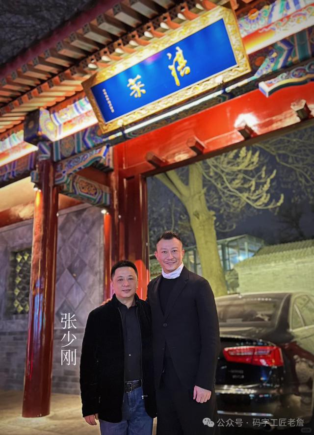 在北京祺菜馆前,作者与国家京鲁菜大师张少刚合影。