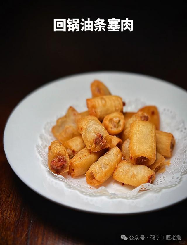 提到创意,汪先生曾经有过一件骄傲的作品,这是他在《自得其乐》中发明的。把肉塞回锅油条"。在困难时期的无奈之举中,早餐吃的油条不能浪费,但被汪先生赋予了二次生命,成为了上得厅的一道美味佳肴。和王世襄先生的“小葱烧海米”一模一样,让人感觉像是在追求过去,经常吃东西。