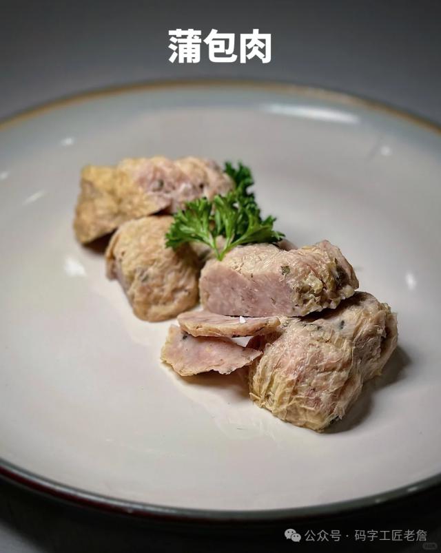 蒲包肉,又名“樊川小肚”,也是一种有着300年历史的高邮美食。这道菜似乎融合了北京松仁小肚和马莲肉的特点。香蒲叶不仅吸收了肉的油腻,还带来了独特的植物香味。汪先生在小说《异秉》中写的这段话,虽然只有几笔,但连做法都解释清楚了,说明他对这种家乡风味的热爱。