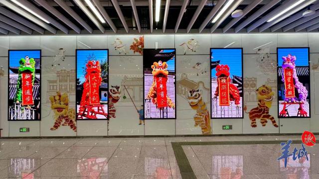 值得注意的是,在目前开通的所有网站中,琶洲站唯一的设置原因是 5 个 LED 由多媒体展示屏组成的巨大背景墙,播放广东狮子醒来视频和照片。屏幕根据狮子醒来与春节相结合的思路巧妙设计,狮子醒来中的“五虎”分别设置了不同的屏幕,与广州的城市地标遥相呼应,为乘客送上了第一个“世界遗年”的新年祝福。