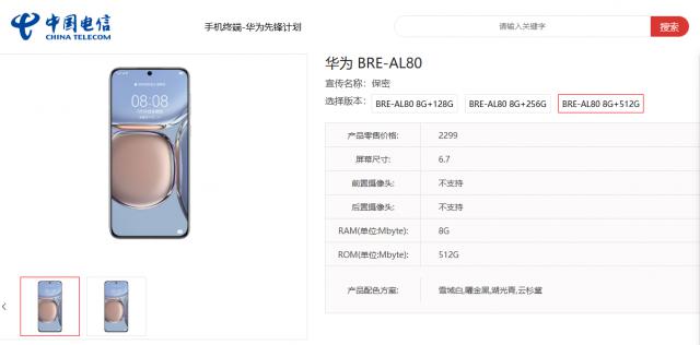 公开资料显示,这款新机型号 " BRE-AL80 " ,存储版本有多个: