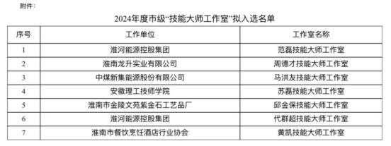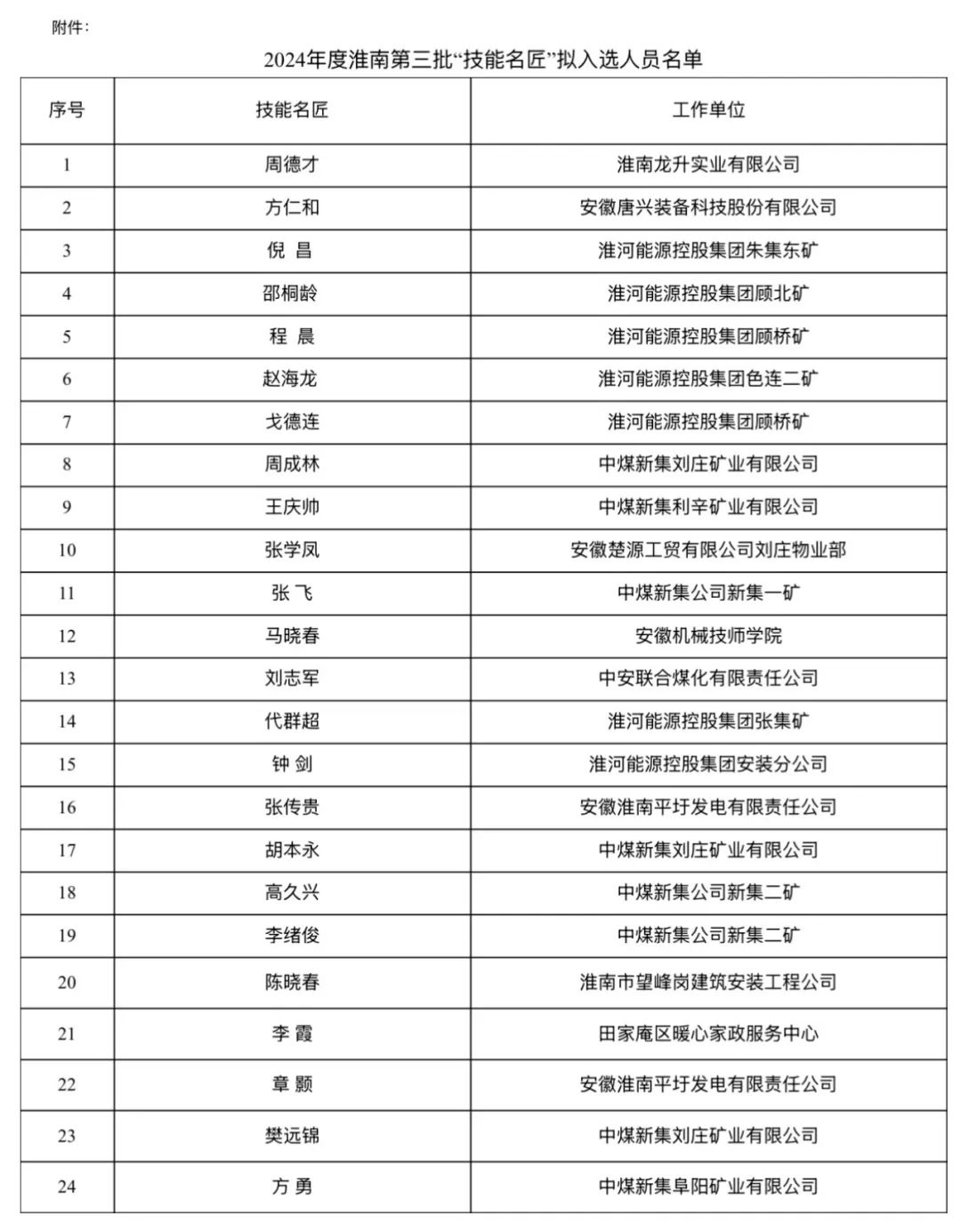 配件:2024年淮南第三批“技能名匠”拟入选人员名单
