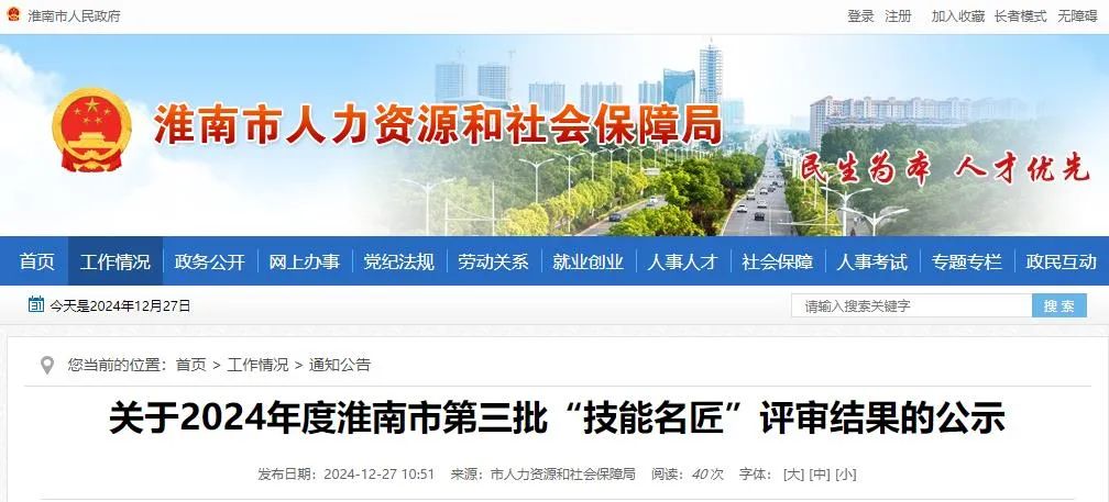 按照淮南市“3361行业名家”选拔培养方法(淮人才[2018]“五号”要求,经个人申报、单位推荐、专家评审,现将淮南市第三批“技能名匠”拟入选名单公示如下。公示时间:2024年12月27日至2025年1月3日,如有异议,请于公示期内向淮南市人力资源和社会保障局职业能力建设科提出联系信息:6678159。个人提出异议的,应当注明自己的真实姓名、单位和通讯地址;以单位名义提出异议的,应当注明企业负责人和联系人的姓名,并加盖公章,逾期不予受理。