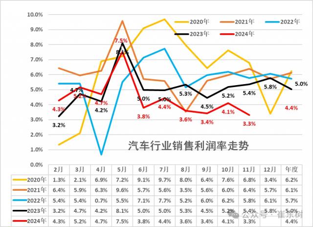2024 年 1-11 月份,汽车产业利润率 与下游工业企业相比,4.4%的利润率 6.1% 汽车行业的平均水平仍然很低。