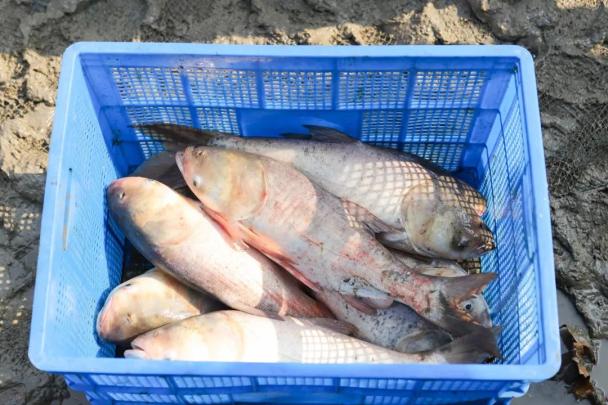 中外师生共同打捞大约3000斤鱼