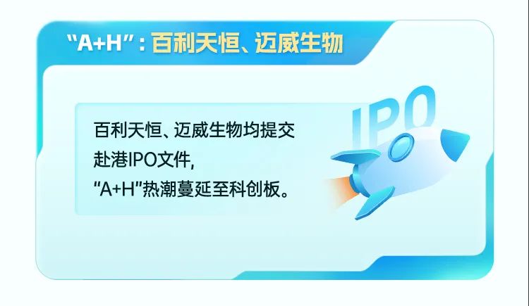 2024年“A H“上市热度回升,科创板生物医药企业中,百利天恒(688506.SH)和迈威生物(6880622.SH)他们都披露了在香港上市的计划。此前登陆科技创新板时,百利天恒实际募集资金9.90亿元,迈威生物实际募集资金34.77亿元。