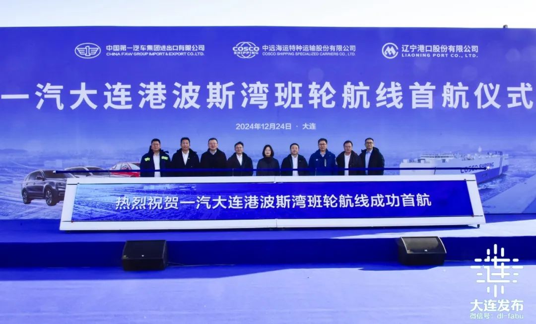 一汽“大连-波斯湾”航线的成功首航,不仅弥补了大连汽车港口中东地区航线的空白,也是辽港股权、一汽进出口、中远海特实践“国车国运”的生动实践。