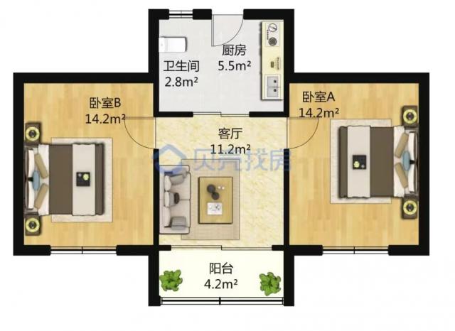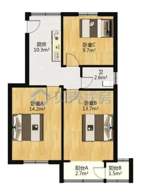60 几平的小户型本来面积很小,做成两室已经很紧凑了。