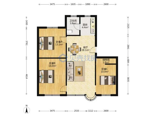 但是仔细一看就会发现,隐藏的一个细节就是客厅在北边,而且只开了一个小窗户。