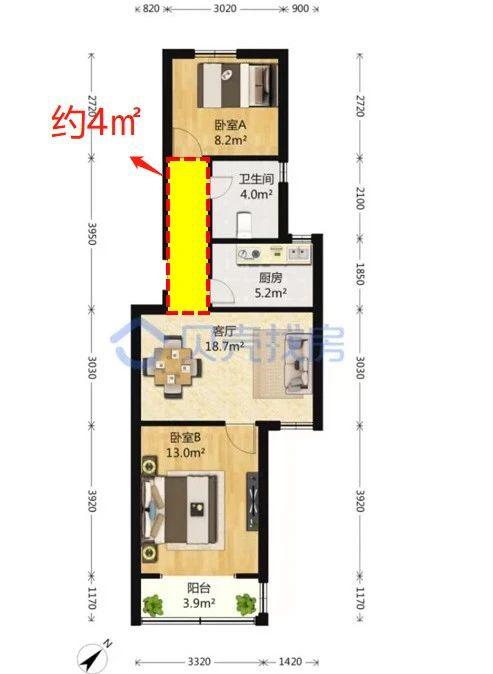 只有粗略的估计才应该只有 4 平方米,除了塞下一台极窄的单开冰箱,从此放不下别的东西。
