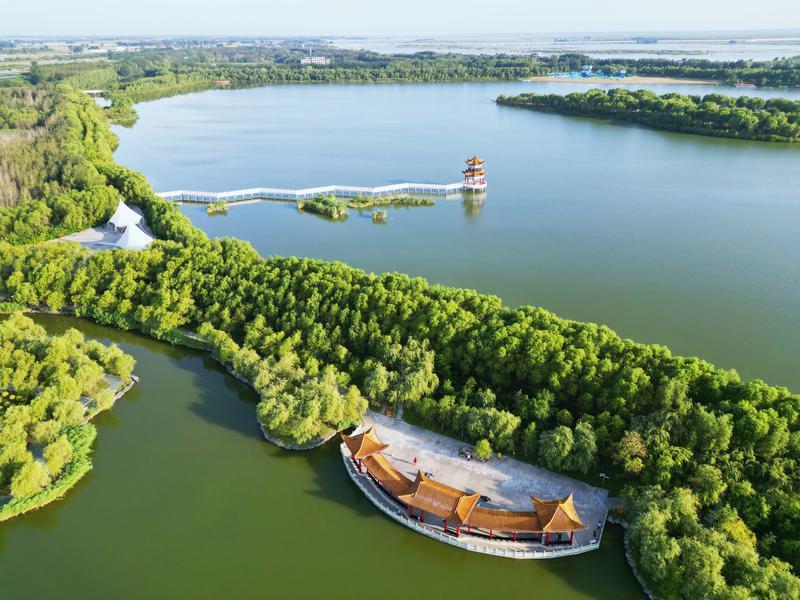 这是辽皇春的圣地,也是野生动植物的天堂。夏天,当你深入湿地时,你可以看到郁郁葱葱的树木、郁郁葱葱的蒲苇、飞鸟和成群的河虾,呈现出原始生态景观的美丽和宁静。