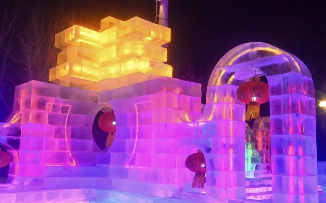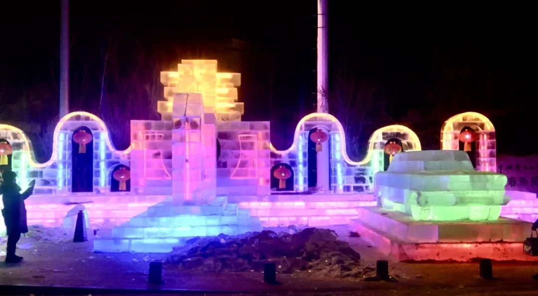 由冰雕组成,如《姑娘的烟袋》、《过年》、《童年记忆》、《龙马精神》、《庆丰收》、《新年大吉》、《二人转》等。,通过具有东北特色和民俗记忆的冰雕形象,呈现出当地的文化特色,弘扬中华优秀文化。