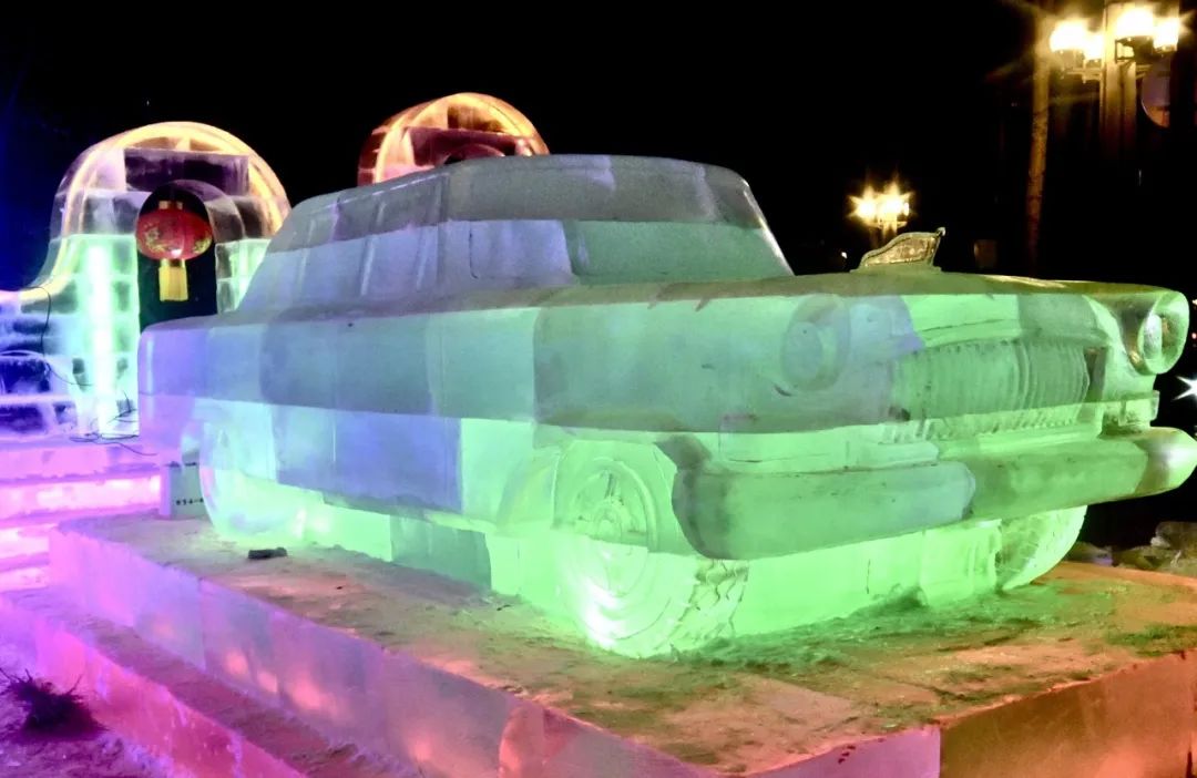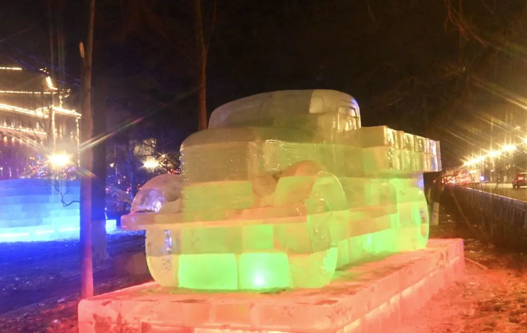 长春作为东北老工业基地“汽车城”的辉煌记忆,由火车时代、蒸汽机车、红旗故事、解放汽车等冰雕组成,通过透明的老解放汽车、老燃气机车的造型,充分展现和诠释了长春作为东北老工业基地的辉煌记忆,激起了市民和游客对汽车城的尊重和赞誉。
