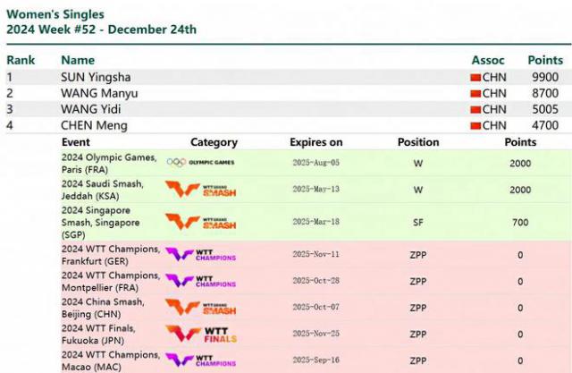 一旦申请通过,樊振东和陈梦的所有积分都将正式清除,他们将不会继续参加任何国际比赛。这意味着樊振东和陈梦将自动缺席。 WTT、ITTF 所有冠名的国际比赛。也就是说,除了下一届奥运会,WTT,其它比赛还不能参加,包括世界杯、世锦赛等其它国际比赛。
