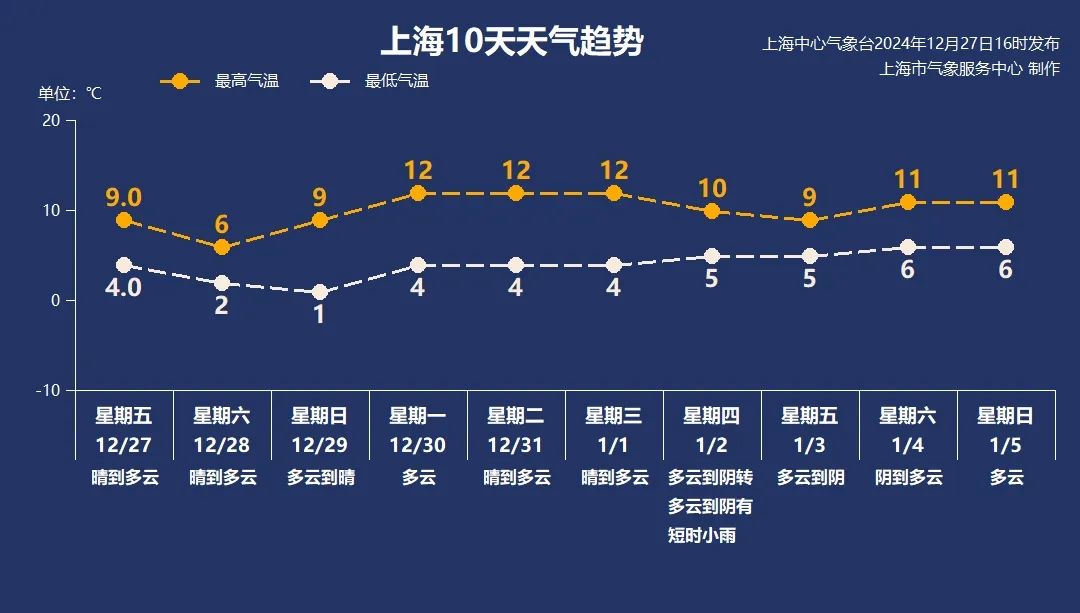 下个星期初,晴天或多云的天气轮流出现,气温也会略有回升,最高气温会回到2位数,大约12℃。根据现在的预报,元旦那天,晴天到多云,气温在4~12℃之间,东至东北风3~4级。整体气象元素适用于户外活动和晾晒衣物。下个星期四晚些时候,受扩散南下的冷空气的影响,可能会出现短暂的小雨,温度也会略有下降。请继续关注最新的天气预报信息,科学安排生活和旅行。