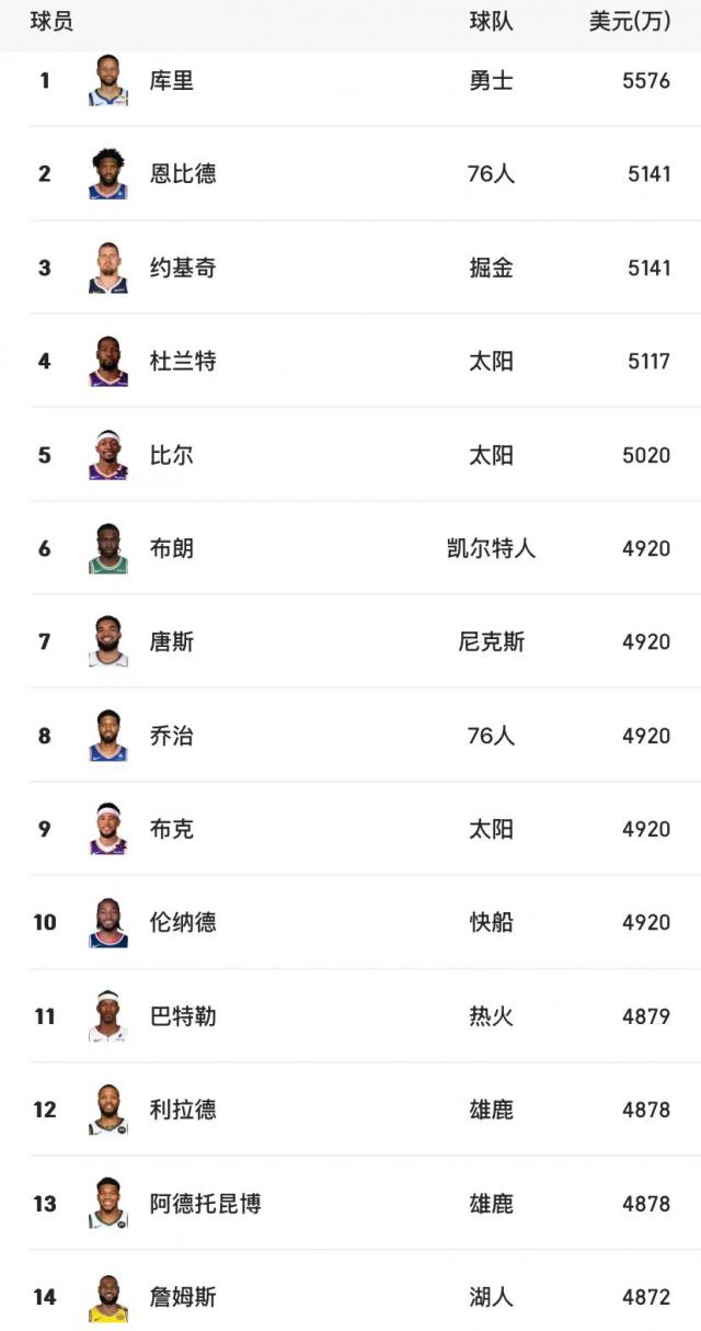 乔治的真实命中率 排名联盟第一的51.5% 269 位置,林迪跟随勇士 - 沃特斯持平。乔治年薪 4920 一万美元,唐斯,杰伦, - 布朗、布克和伦纳德持平,仅次于库里、恩比德、约基奇、杜兰特和比尔。看到乔治的表现,快船可能很高兴没有和他续约。
