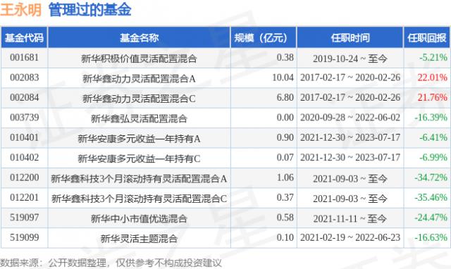 王永明先生:中国,经济学博士。曾任西南证券资产管理部研究员、恒泰证券R&D中心主管、上海名禹资产管理有限公司研究总监、上海尚阳投资管理有限公司投资总监。2016 年 11 每月加入新华基金管理有限公司。2019 年 10 月 24 日本担任混合型证券投资基金基金主管,积极价值,灵活配置。2017 年 2 月至 2020 年 2 月 26 日任新华鑫动力灵活配置混合型证券投资基金主管。2020 年 9 月 28 日本是新华鑫弘灵活配置混合型证券投资基金的主管。2021 年 2 月 19 日至 2022 年 6 月 23 日本新华灵活主题混合型证券投资基金主管。新华鑫科技现任 3 拥有灵活配置混合型证券投资基金主管的月滚动。2021 年 11 月 1 日起任新华中小市值优选混合型证券投资基金主管。2021 年 12 月 30 日至 2023 年 7 月 17 一年持有期混合型证券投资基金基金主管日担任新华安康多元收益。2023 年 11 月 23 日本是新华景气行业混合型证券投资基金的主管。