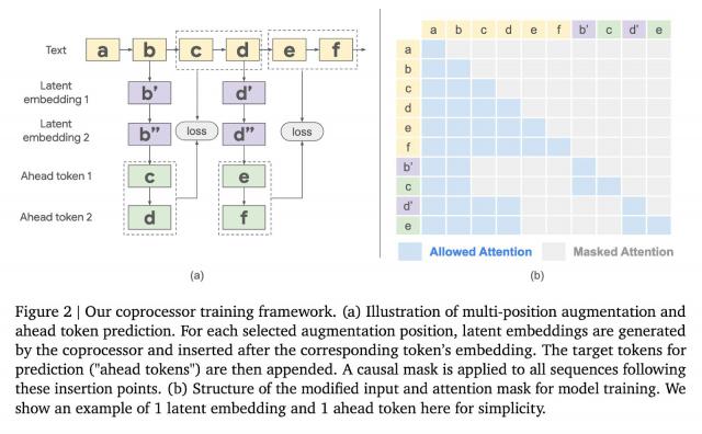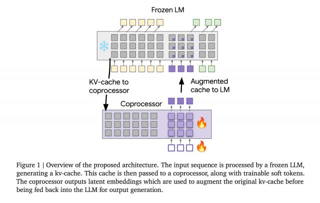 “可微缓存增强”(Differentiable Cache Augmentation)选择一台训练有素的协处理器,通过潜在的嵌入来提高。 LLM 的键值(kv)缓存,丰富模型内部记忆,关键在于保持基础。 LLM 同时对异步运行的协处理器进行冻结训练。