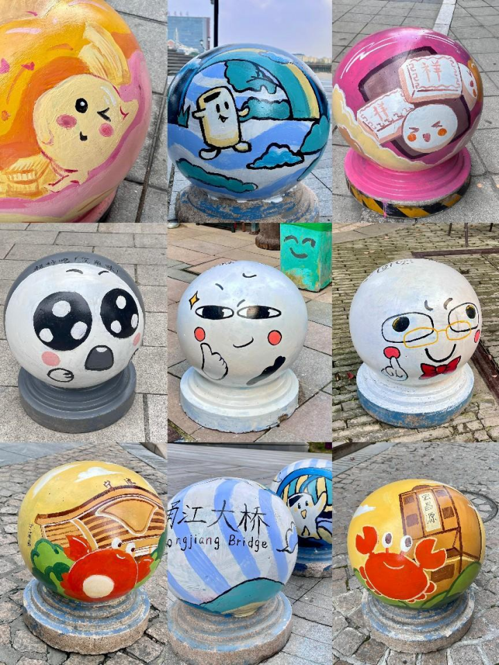 随机分布在小区内的小码头,以可爱有趣的外表成功“爆红”。来自宁波大学22级视觉传达专业的张瑞妍和黄蕊带领他们的绘画团队为老外滩街区注入了生动的色彩和活力。三组设计方案从宁波的历史文化、区域美食和视觉元素中汲取灵感,从不同角度呈现宁波老外滩的特色。