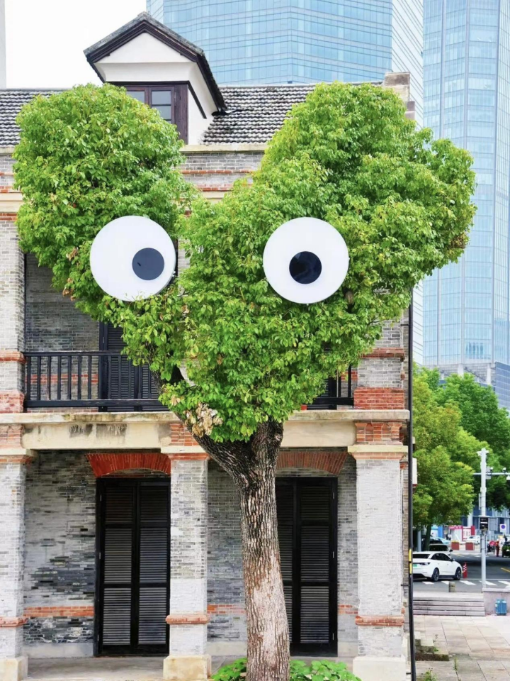 这棵心形的绿树因其俏皮的大眼睛造型,吸引了行人频繁停留。它不仅展示了外滩的设计趣味性,也成为传递温暖和快乐的象征。