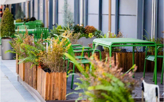 室外广场错落有致的绿色植物和花卉环境交织成一个四季变化的生态画轴,为市民提供了一个亲近自然的休闲胜地。近200平方米的商户外摆放就像一条柔软的丝带围绕着购物中心,阳伞下的休闲桌椅为商务会谈和休闲提供了极好的场所。
