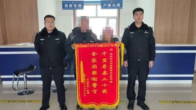 第二天,一面印着“千里寻亲二十年” 全家团聚谢警察的横幅送到胜利派出所,张先生对民警关心群众、为民服务的行为表示衷心的感谢。
