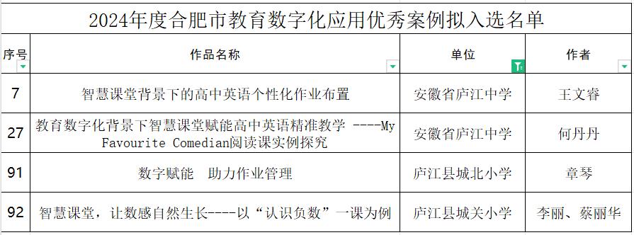 《关于2024年合肥市教育数字化应用优秀案例征集活动拟当选优秀案例名单公示》