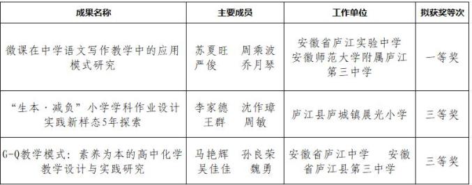 配件:合肥市第七届优秀教育研究成果拟获奖名单