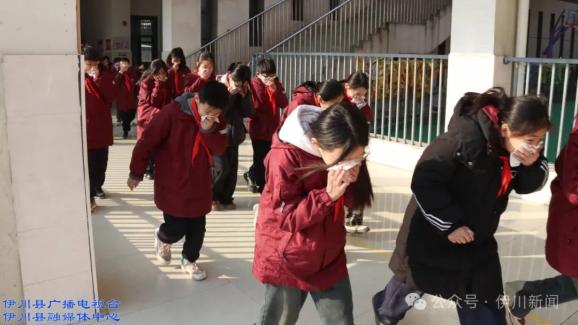 最近,伊川县新区实验小学开展了冬季消防疏散演习。