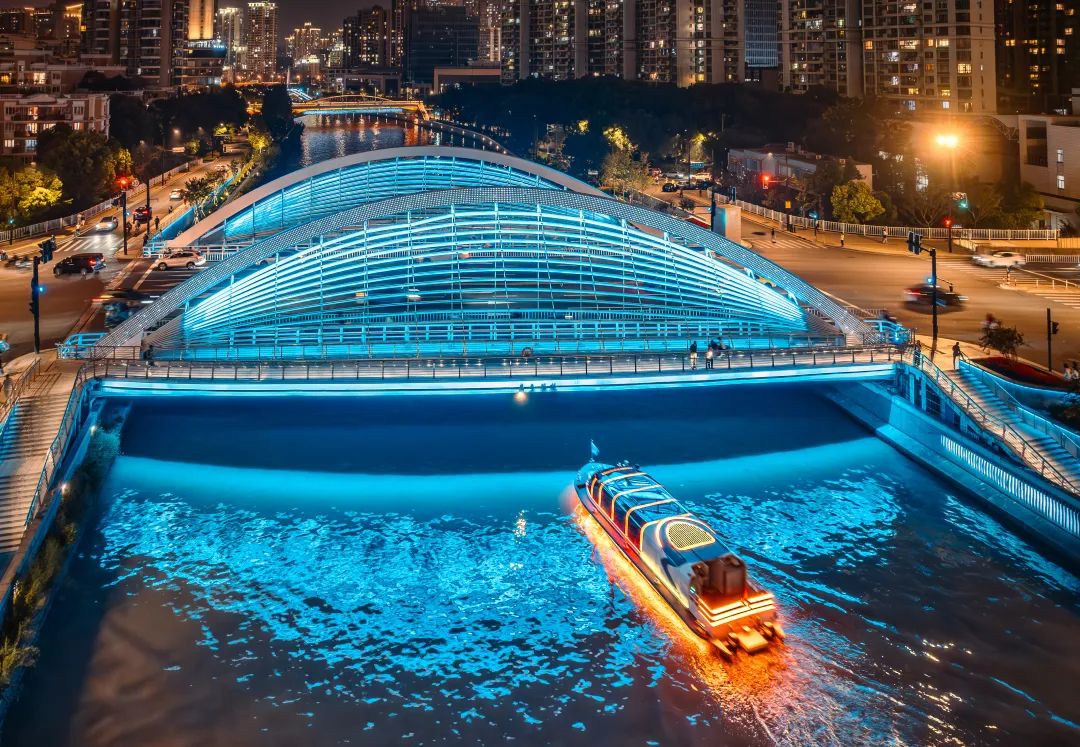外滩、北外滩、小陆家嘴地区等核心区域,苏州河沿岸、市级商业区、“申”字形高架沿线等重要单个建筑(结构)建筑采用彩光和舒缓的动态光线,外滩河岸开启瀑布灯。