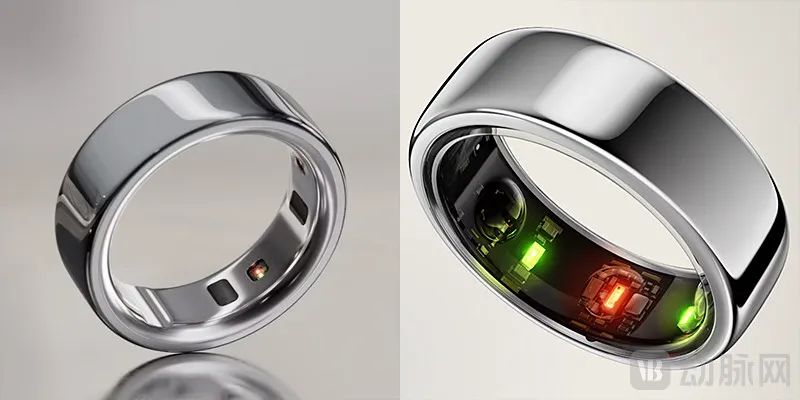 Oura Ring 4(左)几乎完全光滑,Oura Ring 3(右)的传感器凸起则肉眼可见。