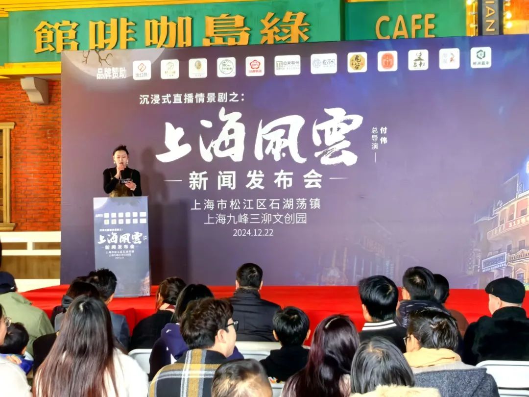 一部剧是一个情景直播间。12月22日,沉浸式直播短剧《上海风云》新闻发布会举行,这也意味着短剧带货的新业态正式落户石湖市荡镇九峰三文创园。