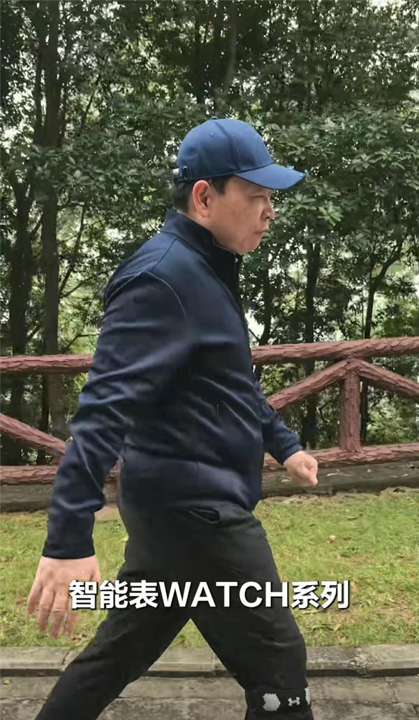 登山时,余承东不忘介绍自己手表的爬山方法,可以监测心率、血氧、步数、高度等信息。