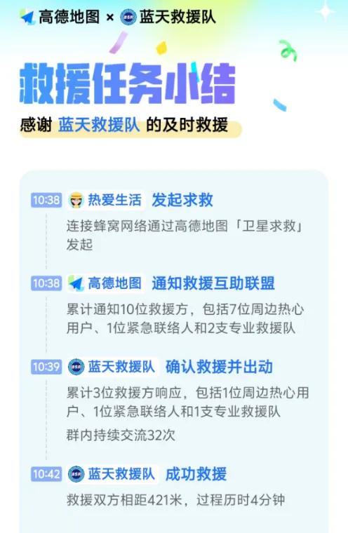 当救援人员和救援人员共同确定救援任务的顺利完成时,系统会自动显示救援任务的总结。