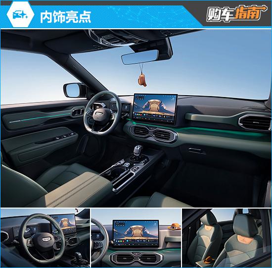 内饰方面,14.6 中控面板和英寸 8.8 英尺液晶仪表为驾驶员带来了便捷的操作体验,提升了整车的现代感。座椅采用皮革、牛仔和仿麂皮面料组合设计,既体现了独特的设计风格,又保证了乘坐舒适性。其中,主副驾驶座椅也有 Born Free logo,体现自由潮流的牛仔气息。