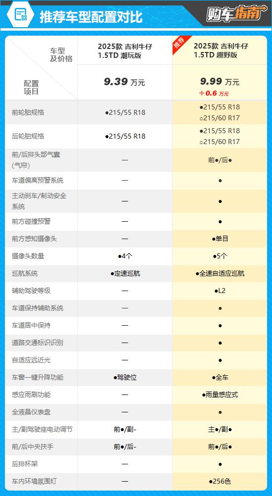 推荐1.5TD趣野版 吉利牛仔购车指南