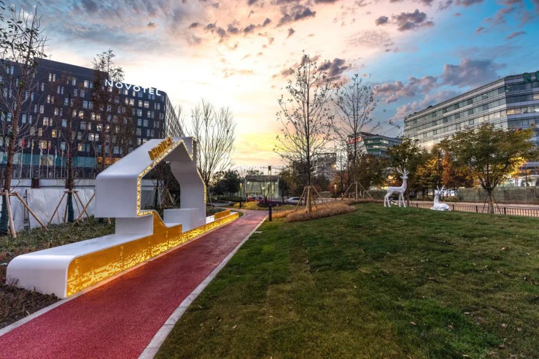 继续逛公园,设计感十足、文艺气息十足的景观走廊、休息凳、以“童年”为主题的艺术家具都让人眼前一亮。它们与上海“自然共生、城市共生、多业态共生”的理念不谋而合,整个公园既宽容又有活力。